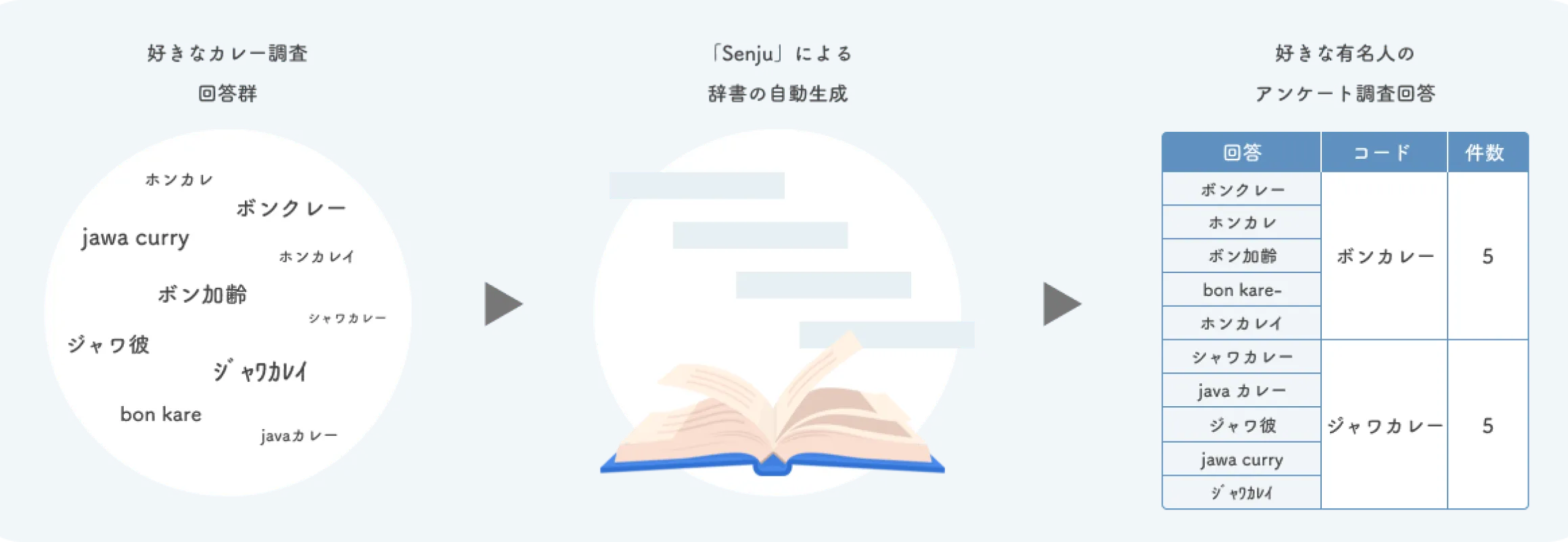 Senjuでは既存サービスと比較して、事前にユーザーが辞書を用意する