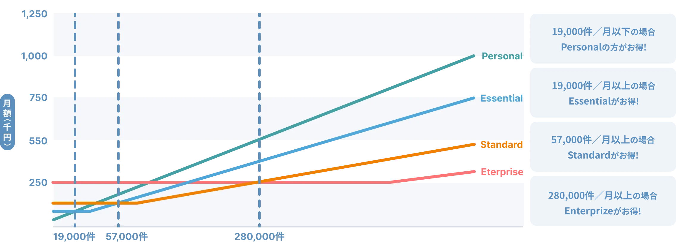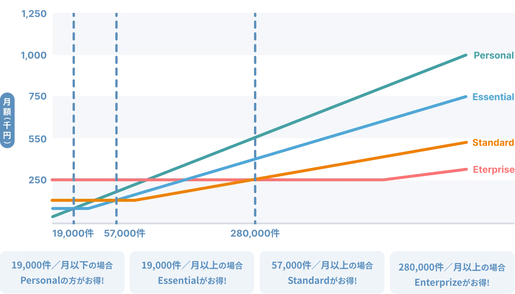 | 料金/月 | ¥1,980 | ¥39,000 | ¥79,000 | ¥249,000 |